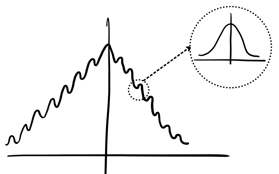 If you look at this graph close enough, see how I’ve drawn the normal distribution of people. Every hump is, in itself, another normal distribution. Meaning, even if you’re on the far right of this graph, there will still be others around you. You can never be the single most-unique person, or the single, “greatest” person.